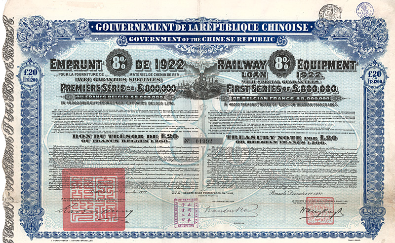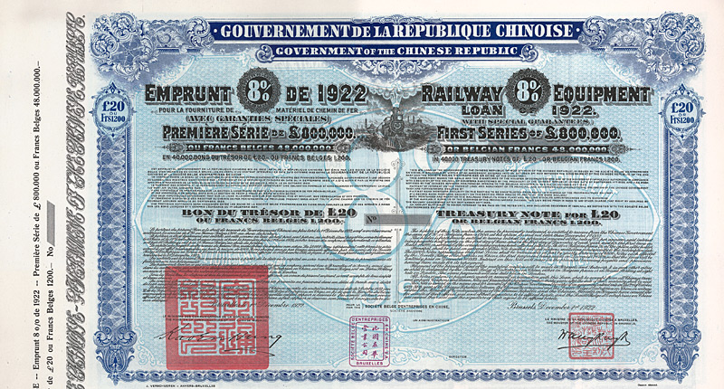 Government of the Chinese Republic - Railway Equipment Loan 1922