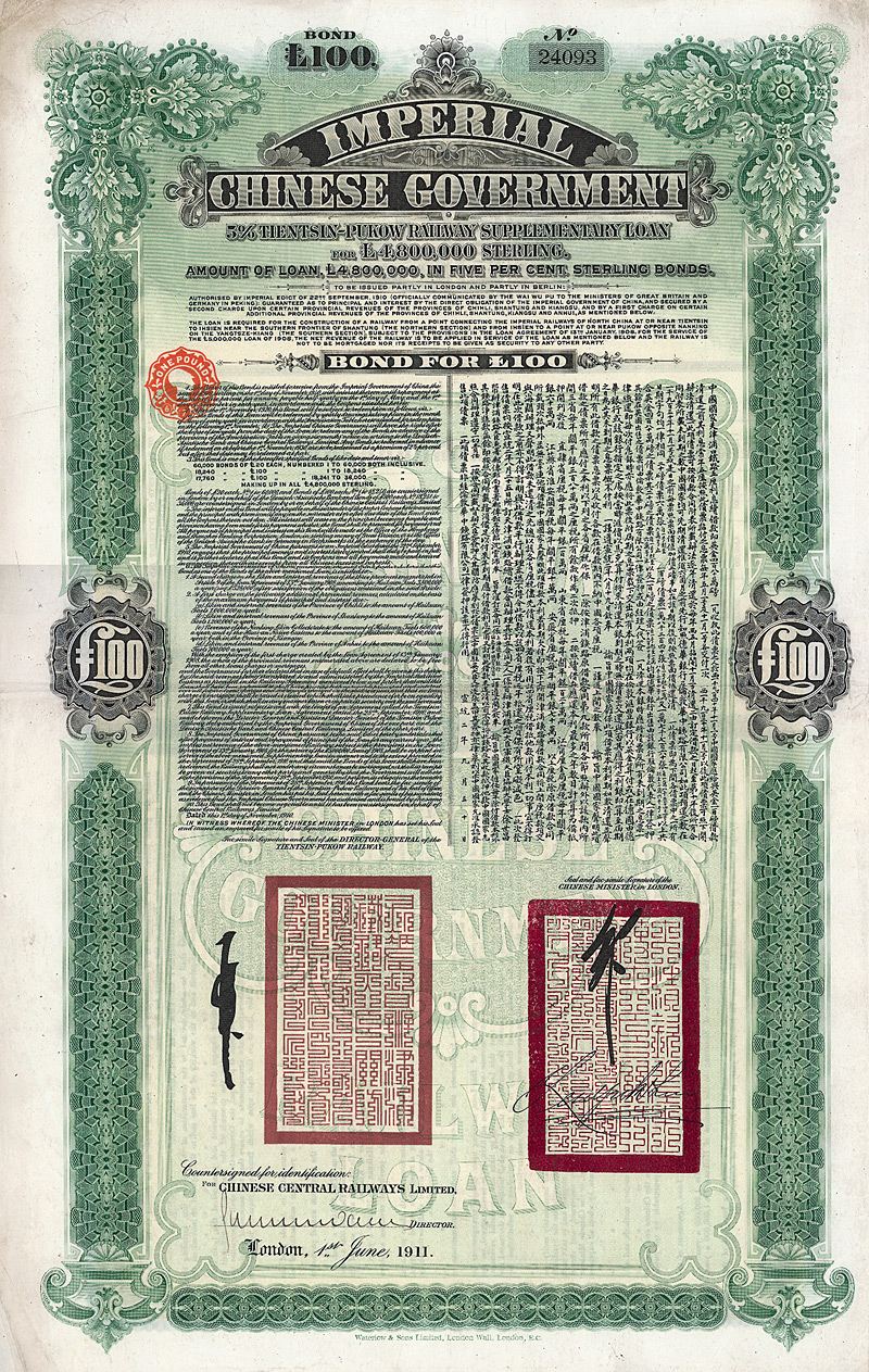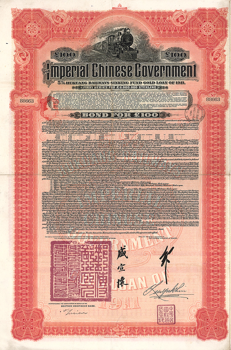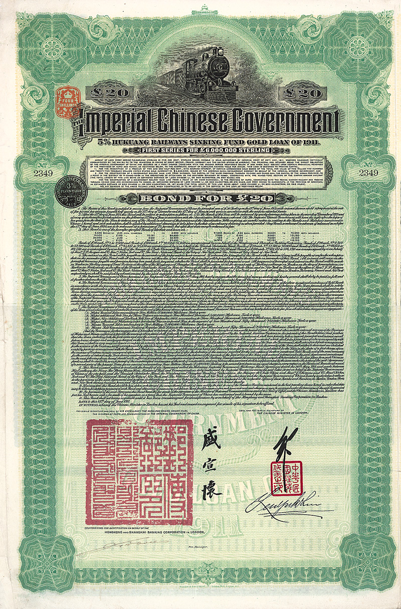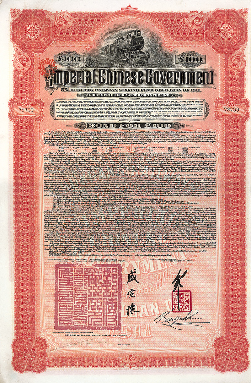 Imperial Chinese Governement - Railway Loan of 1911 (Peking-Hankow Railway)