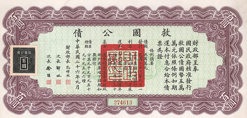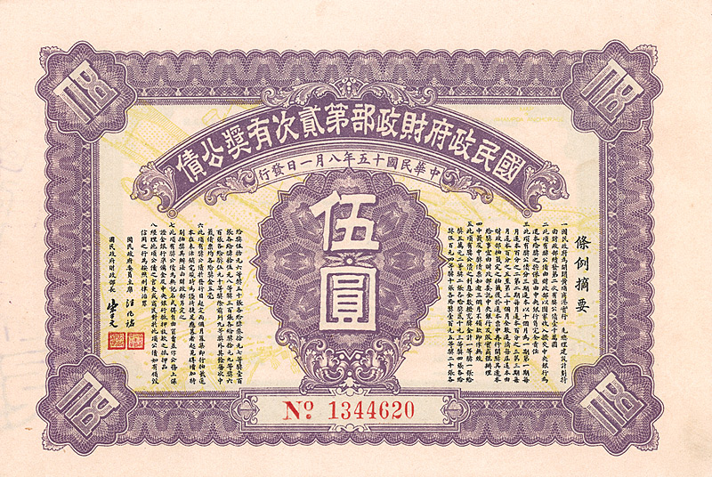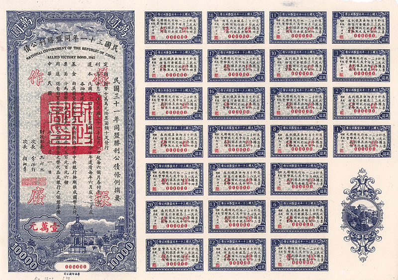 National Government of the Republic of China - Allied Victory Bond 1942