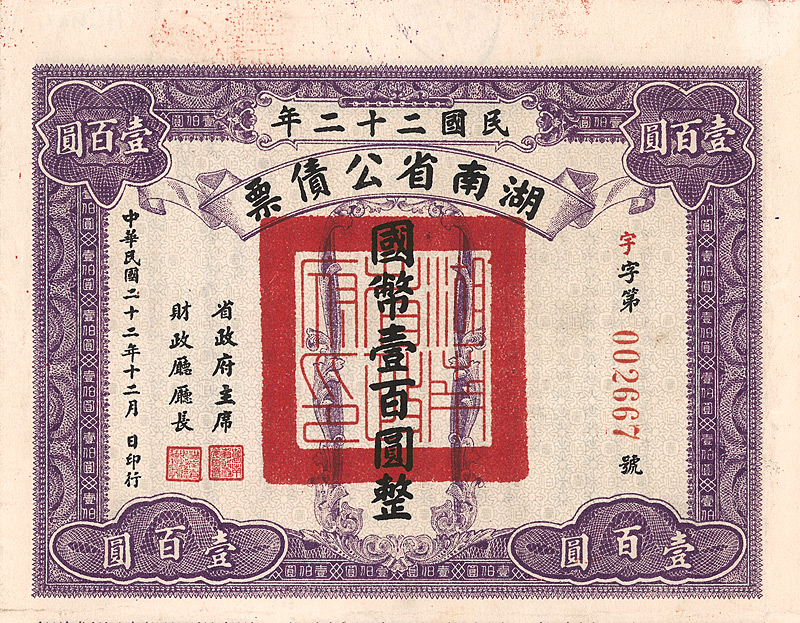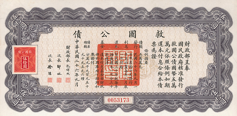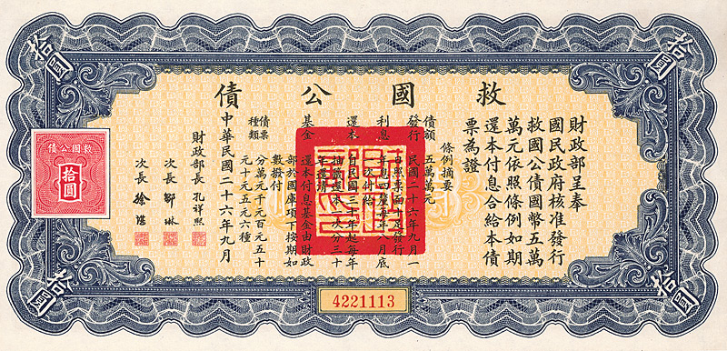 National Government of China Rehabiliation Short Term Bonds