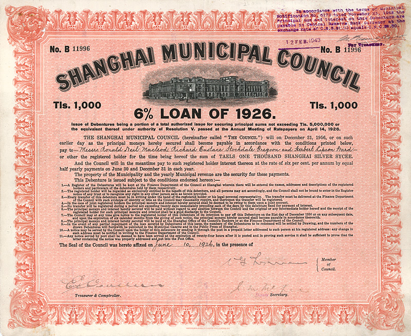 Shanghai Municipal Council - (Loan of 1926)