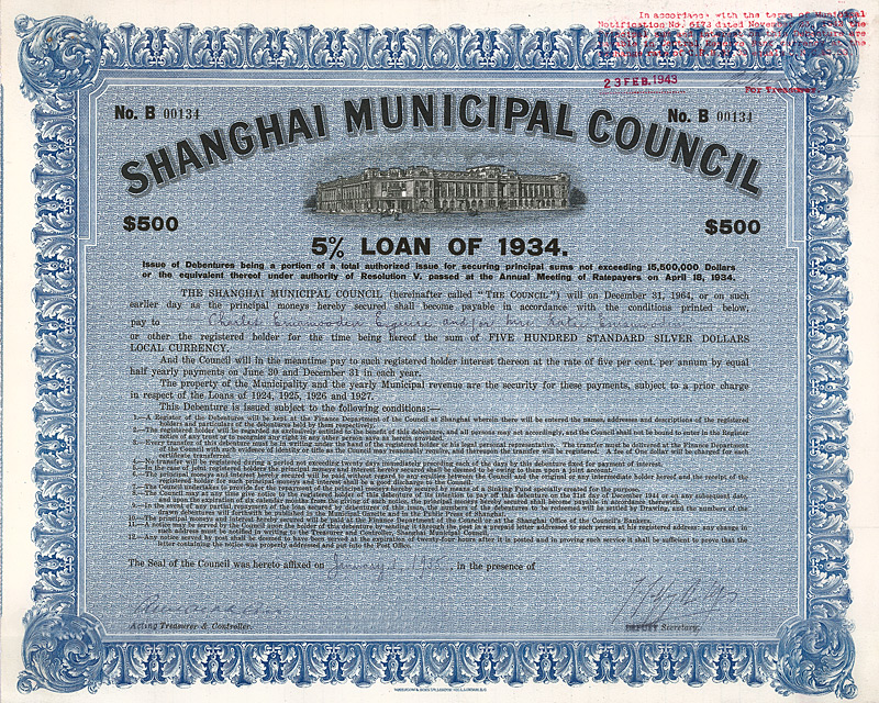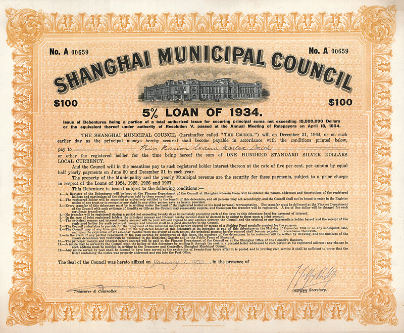 Shanghai Municipal Council - (Loan of 1934)