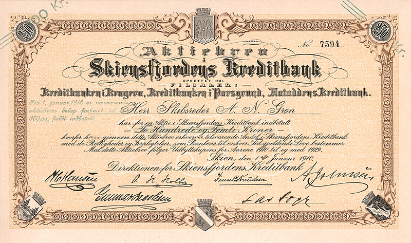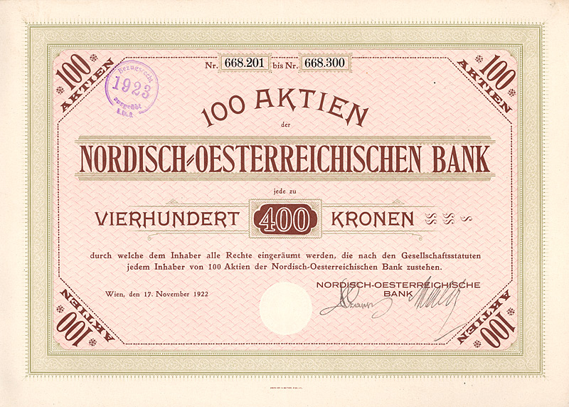 Aktie 100 x 200 Kronen, Nr. 2501-2600