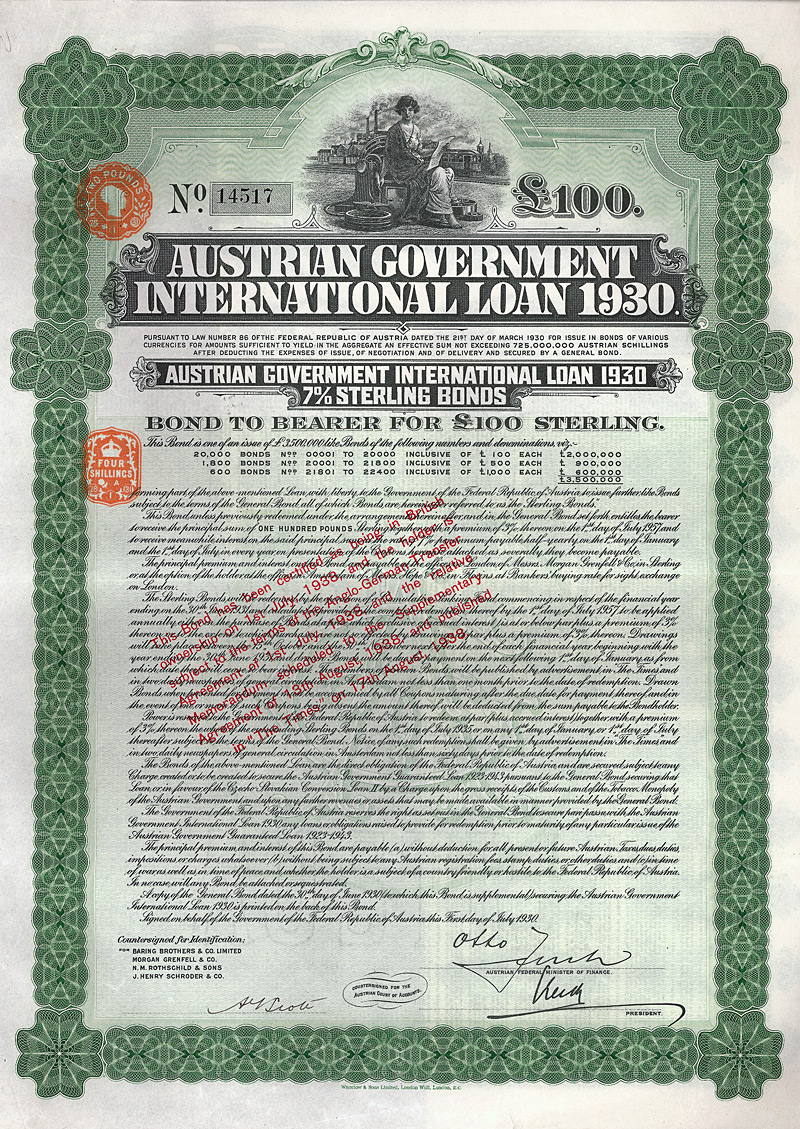 4 % Gold Bond Serie A 1.000 $ = 4.200 Mark = 205.15.2. £ = 5.180 Fcs., Nr. 34624