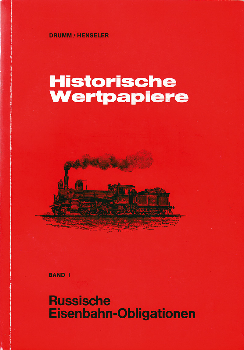 Taschenbuch, Format 21 x 14,8 cm, 187 Seiten. Abbildungen s/w. Der Katalog stellt die Eisenbahn-Anleihen (1859 - 1914 - 1918) teilweise im Bild und mit Datenlistungen der verschiedenen Emissionen in tabellarischer Form vor. Einleitungsteil dreisprachig deutsch, englisch und französisch, Listungsteil deutschsprachig. Inhalt: Aus der Geschichte der russischen Eisenbahnen, Abbildung einer Bekanntmachung der Moskau-Jaroslaw-Archangel Eisenbahn-Gesellschaft, Abbildung eines Emissionsprospekts, Erläuterungen zum Katalogteil, Katalogteil, alphabetisches Register, Literaturhinweise, Karte der russischen Eisenbahnen (Faltblatt).