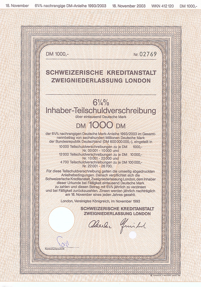 7,5 % Gold Bond 1000 $, Nr. 1069