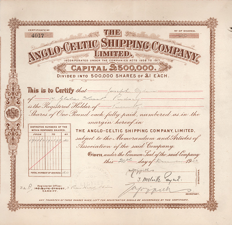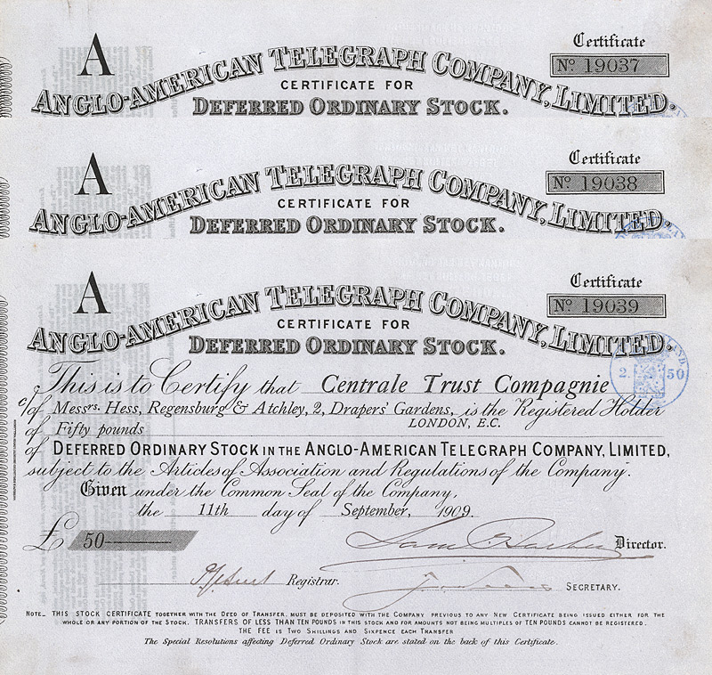 50 Class C Shares à 20 £, Nr. 3901-3950