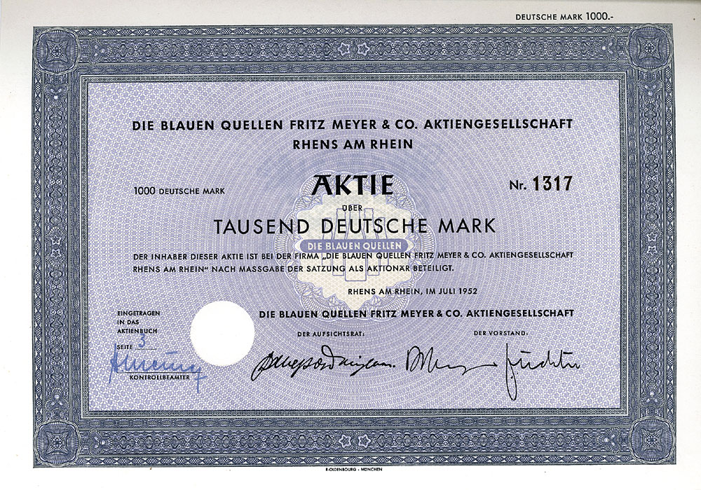 DM-Aktien entwickeln sich immer mehr zu einem sehr beliebten Sammelgebiet mit ständig wachsender Anhängerschar. Kein anderes Spezialgebiet verzeichnete in den letzten Jahren solch große Wertsteigerungen wie DM-Aktien. Darum bin ich sehr froh darüber, Ihnen die nachfolgenden Stücke anbieten zu können! Die Dubletten-Sammlung wurde in den letzten Jahren von sachkundiger Hand aufgebaut und glänzt trotz des jungen Alters durch ihre Vielfalt und Breite. Auch der fortgeschrittene Sammler entdeckt hier so manches, langgesuchtes "Schätzchen". Der Anfänger hingegen kann aus der Fülle an Material im Handumdrehen eine beachtliche Kollektion zusammenstellen. Treffen Sie Ihre Wahl! |