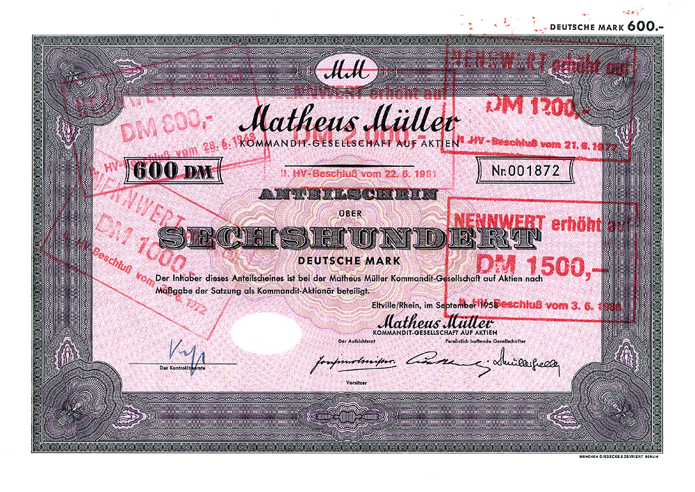 Los Nr. 974-1096 Doubletten-Sammlung Deutschland 1948-2004 (mit den Anfangsbuchstaben E-M) ![]() Motto: DM-Aktien lebendige Zeugnisse des deutschen Wirtschaftswunders |