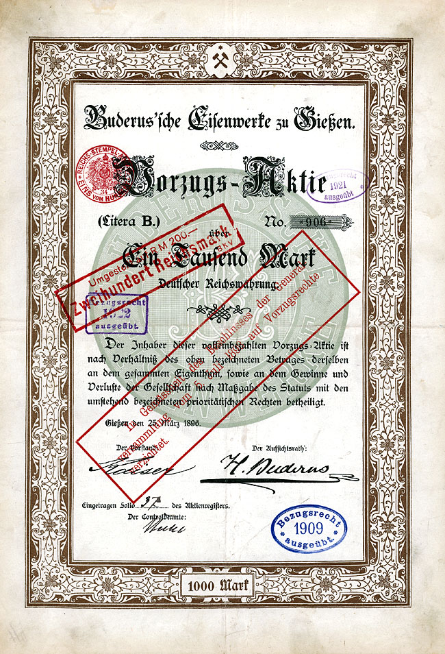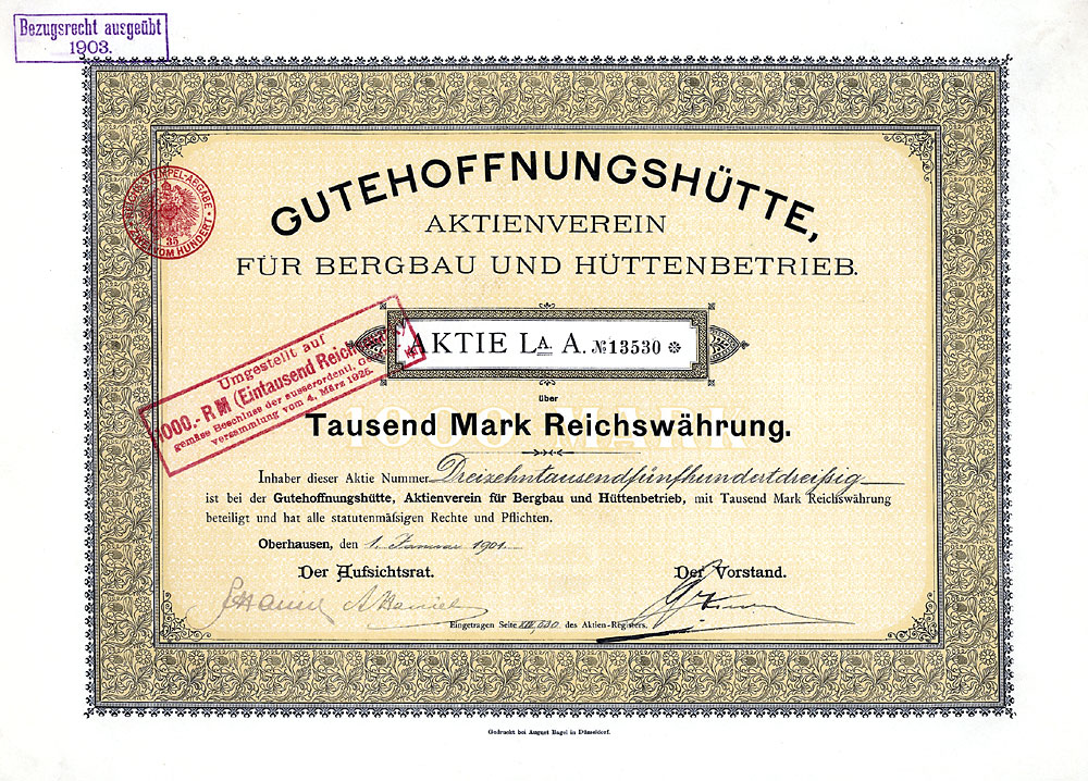Schweizer Insolvenz-Versteigerung Ende 2004 ging ein bekanntes traditionsreiches Handelshaus für Historische Wertpapiere in die Insolvenz. Im Auftrage eines Insolvenzgläubigers versteigere ich einen breiten Querschnitt von ca. 400 Historischen Wertpapieren überwiegend aus Deutschland, der Schweiz und Österreich. Die hier angebotenen deutschen Wertpapiere stammen zumeist aus dem legendären Reichsbank-Bestand, auf den die Schweizer Firma schon in den 80er Jahren Zugriff bekam. Anders als die neuerdings in den sog. "BARoV-Versteigerungen" angebotenen stark lochentwerteten Papiere sind die hier zur Versteigerung anstehenden Reichsbank-Wertpapiere völlig unentwertet und damit natürlich deutlich höher zu taxieren. Dennoch beträgt der Startpreis in diesem Sonderteil der Auktion jeweils nur 1 EUR, denn der Insolvenzgläubiger möchte restlos alles verkauft haben. Hier bieten sich für Sie also besonders günstige Gelegenheiten. Übrigens enthält der mir zur Verwertung übergebene Bestand in einigen Fällen zwei Exemplare eines Wertpapiers, so daß bei einigen Zuschlägen die Stückenummer von der hier angegebenen Nr. abweichen kann. |