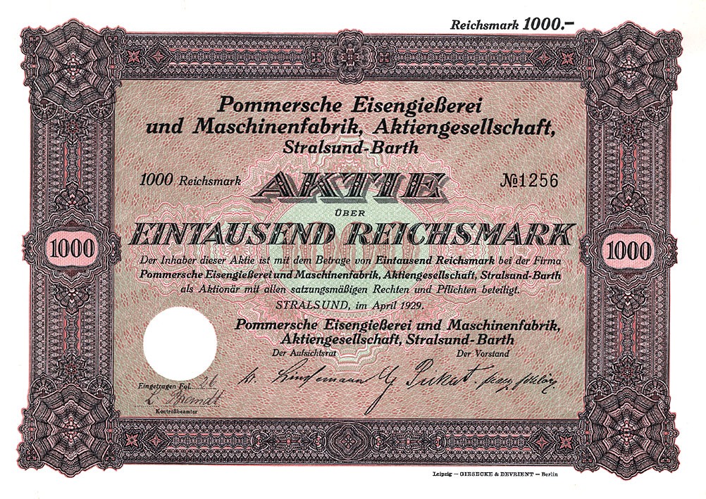 Firmenname Ort Art Nennwert Datum Eisen- und Hüttenwerke AG Bochum Aktie 1.000 RM Dezember 1936 Eisen- und Hüttenwerke AG Köln Aktie 1.000 RM Juni 1940 Eisen- und Hüttenwerke AG Köln 4,5 % TSV 500 RM Aug. 1940 Eisen- und Hüttenwerke AG Köln 4,5 % TSV 1.000 RM Aug. 1940 Eisenhüttenwerk Keula bei Muskau AG Keula 5 % TSV 1.000 Mark April 1921 Gebler-Werke AG Radebeul Aktie 300 RM Aug. 1929 Hochofenwerk Lübeck AG Lübeck Aktie 1.000 Mark 1. Dezember 1922 Hochofenwerk Lübeck AG Lübeck Aktie 10.000 Mark 1. Dezember 1922 Hochofenwerk Lübeck AG Lübeck Aktie 1.000 RM 20. Juni 1929 Hochofenwerk Lübeck AG Lübeck Aktie 1.000 RM Jauar. 1931 Hochofenwerk Lübeck AG Lübeck 5 % TSV 1.000 RM Jan. 1940 Kölsch-Fölzer-Werke AG Siegen Aktie 100 RM März 1932 Kölsch-Fölzer-Werke AG Siegen Aktie 300 RM März 1932 Mitteldeutsche Stahlwerke AG Riesa 4 % TSV 500 RM Dez. 1941 Pommersche Eisengießerei und Maschinenfabrik AG Stralsund Aktie 5.000 Mark Aug. 1923 Pommersche Eisengießerei und Maschinenfabrik AG Stralsund Aktie 100 RM April 1929 Pommersche Eisengießerei und Maschinenfabrik AG Stralsund Aktie 1.000 RM April 1929 Pommersche Eisengießerei und Maschinenfabrik AG Stralsund Aktie 100 RM Nov. 1941 Siegen-Solinger Gussstahl-Aktien-Verein Solingen Aktie 1.200 Mark Febr. 1923 Siegen-Solinger Gussstahl-Aktien-Verein Solingen VZ-Aktie 1.200 Mark Febr. 1923 |