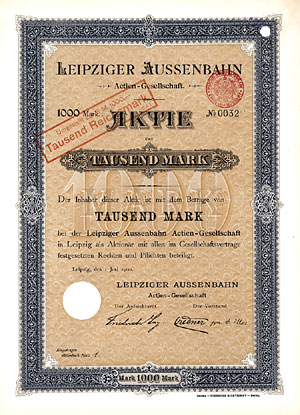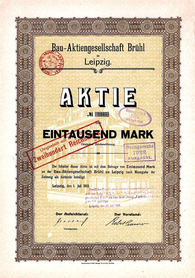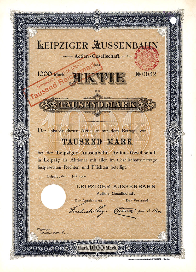 Firmenname Ort Art Nennwert Datum AG für Haus- und Grundbesitz i. Abw. Leipzig 4 % TSV 1.000 RM Sept. 1941 Aktienbierbrauerei Gohlis Leipzig-Gohlis Aktie 400 RM 20. Aug 1925 Bau-AG am Neumarkt Leipzig Aktie 1.000 Mark 7. Apr 1913 Bau-AG Brühl Leipzig Aktie 1.000 Mark 1. Jul 1912 Bibliographisches Institut AG Leipzig Aktie 1.000 Mark 21. Apr 1915 Bibliographisches Institut AG Leipzig Aktie 1.000 Mark 30. Nov 1921 Bibliographisches Institut AG Leipzig Aktie 1.000 Mark 12. Sep 1922 Brauerei C.W. Naumann AG Leipzig-Plagwitz Aktie 100 RM 6. Jun 1941 Gebrüder Heine Tuchhandels-AG Leipzig Aktie 1.000 RM 13. Jul 1938 Handelsvereinigung Dietz & Richter - Gebrüder Lodde AG Leipzig Aktie 100 RM 12. Aug 1925 Heine & Co. AG Leipzig VZ-Aktie 1.000 Mark April 1921 Hugo Schneider AG Leipzig Aktie 100 RM 5. Sep 1932 Hugo Schneider AG Leipzig Aktie 1.000 RM 5. Sep 1932 Hugo Schneider AG Leipzig Aktie 1.000 RM Jan. 1943 Hupfeld-Gebr. Zimmermann AG Leipzig Aktie 100 RM 1. Dez 1935 Kammgarnspinnerei Stöhr & Co. AG Leipzig Aktie 100 RM 9. Aug 1932 Kammgarnspinnerei Stöhr & Co. AG Leipzig Aktie 1.000 RM 9. Aug 1932 Kammgarnspinnerei Stöhr & Co. AG Leipzig Aktie 100 RM 1. Dez 1937 Kammgarnspinnerei zu Leipzig Leipzig Aktie 100 RM 15. Feb 1938 Kammgarnspinnerei zu Leipzig Leipzig Aktie 1.000 RM April 1942 Kirchner & Co. AG Leipzig VZ-Aktie 1.000 Mark 26. Jan 1921 Kirchner & Co. AG Leipzig Aktie 500 RM 15. Mär 1930 Köllmann Werke AG Leipzig Aktie 1.000 RM 1. Jan 1933 Köllmann Werke AG Leipzig VZ-Aktie 1.000 RM 1. Jan 1941 Köllmann Werke AG Leipzig Aktie 1.000 RM 9. Okt 1941 Landkraftwerke Leipzig AG Kulkwitz Aktie 100 RM 1. Apr 1941 Leipziger Aussenbahn AG Leipzig Aktie 1.000 Mark 1. Jun 1900 Leipziger Aussenbahn AG Leipzig Aktie 1.000 Mark 5. Jun 1909 Leipziger Aussenbahn AG Leipzig Aktie 1.000 Mark 17. Mär 1914 Leipziger Bierbrauerei zu Reudnitz Riebeck & Co. AG Leipzig-Reudnitz Aktie 100 RM 1. Aug 1933 Leipziger Bierbrauerei zu Reudnitz Riebeck & Co. AG Leipzig-Reudnitz Aktie 1.000 RM 1. Aug 1933 Leipziger Braunkohlenwerke AG Albersdorf bei Leipzig Aktie 1.000 Mark 03.08.1891 Leipziger Chromo- und Kunstdruck-Papierfabrik vorm. Gustav Najork AG Leipzig Aktie 100 RM 29. Dez 1934 Leipziger Chromo- und Kunstdruck-Papierfabrik vorm. Gustav Najork AG Leipzig Aktie 100 RM 24. Mär 1938 Leipziger Immobiliengesellschaft - Bank für Grundbesitz AG Leipzig Aktie 1.000 RM 10. Mai 1927 Leipziger Immobiliengesellschaft - Bank für Grundbesitz AG Leipzig Aktie 1.000 RM 2. Sep 1928 |