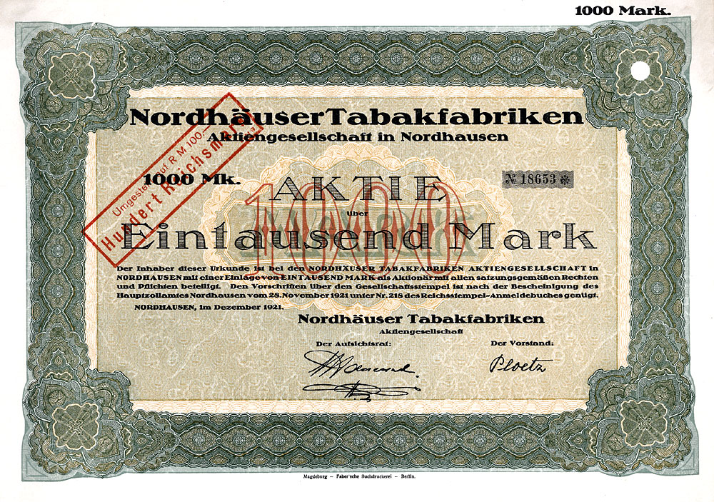 Firmenname Ort Art Nennwert Datum Ammendorfer Papierfabrik Ammendorf bei Halle (Saale) Aktie 1.000 RM Okt. 1928 Ammendorfer Papierfabrik Ammendorf bei Halle (Saale) Aktie 100 RM 25. Okt 1929 Bankverein Artern, Spröngerts, Büchner & Co. KG auf Aktien Artern Aktie 100 RM 31. Mai 1925 Bankverein Artern, Spröngerts, Büchner & Co. KG auf Aktien Artern Aktie 1.000 RM 31. Mai 1925 Bankverein Artern, Spröngerts, Büchner & Co. KG auf Aktien Artern Aktie 20 RM 30. Apr 1927 Bitterfelder Actien-Bierbrauerei vormals A. Brömme Bitterfeld Aktie 1.000 Mark 10. Dez 1921 Deutsche Continental-Gas-Gesellschaft Dessau Actie 1.200 Mark 2. Jan 1901 Deutsche Continental-Gas-Gesellschaft Dessau Aktie 1.200 Mark April 1914 Deutsche Continental-Gas-Gesellschaft Dessau Aktie 1.000 Mark Dez. 1922 Deutsche Continental-Gas-Gesellschaft Dessau Aktie 400 RM März 1925 Deutsche Continental-Gas-Gesellschaft Dessau Aktie 400 RM Jan. 1927 Deutsche Continental-Gas-Gesellschaft Dessau Aktie 2.000 RM Aug. 1928 Deutsche Continental-Gas-Gesellschaft Dessau 5 % TSV 1.000 RM April 1937 Deutsche Continental-Gas-Gesellschaft Dessau Aktie 1.000 RM Okt. 1942 Elektrische Kleinbahn im Mansfelder Bergrevier AG Berlin Aktie 1.000 Mark 8.12.1898 Elektrische Kleinbahn im Mansfelder Bergrevier AG Berlin VZ-Aktie 1.000 Mark 16. Feb 1909 Gebhardt & Koenig - Deutsche Schachtbau AG Nordhausen/Harz Aktie 1.000 RM Juni 1939 Gottfried Lindner AG Ammendorf bei Halle/Saale Aktie 100 RM Juni 1930 Gottfried Lindner AG Ammendorf Aktie 100 RM März 1942 Halle-Hettstedter Eisenbahn-Gesellschaft Halle (S.) 3,5 % Genußrechtsurkunde Lit. A 50 RM 6. Mai 1926 Hallesche Salzwerke und chemische Fabrik Kalbe AG Calbe Aktie 300 RM Aug. 1938 Kleinbahn-AG Wallwitz-Wettin Wettin Aktie 1.000 Mark 3. Sep 1903 Nordhäuser Aktien-Brauerei Nordhausen Aktie Lit. E 500 RM 1. Mai 1928 Nordhäuser Tabakfabriken AG Nordhausen Aktie 1.000 Mark Dez. 1921 Opel & Kühne AG Zeitz Aktie 100 RM Juli 1933 Verein Chemischer Fabriken AG Zeitz Aktie 100 RM März 1925 Zuckerraffinerie Halle Halle a.d.S. Aktie 1.000 RM 1. Apr 1928 Zuckerraffinerie Tangermünde Fr. Meyers Sohn AG Tangermünde Aktie 1.000 Mark Dez. 1915 Zuckerraffinerie Tangermünde Fr. Meyers Sohn AG Tangermünde Aktie 1.000 Mark März 1920 Zuckerraffinerie Tangermünde Fr. Meyers Sohn AG Tangermünde Aktie 500 RM März 1927 |