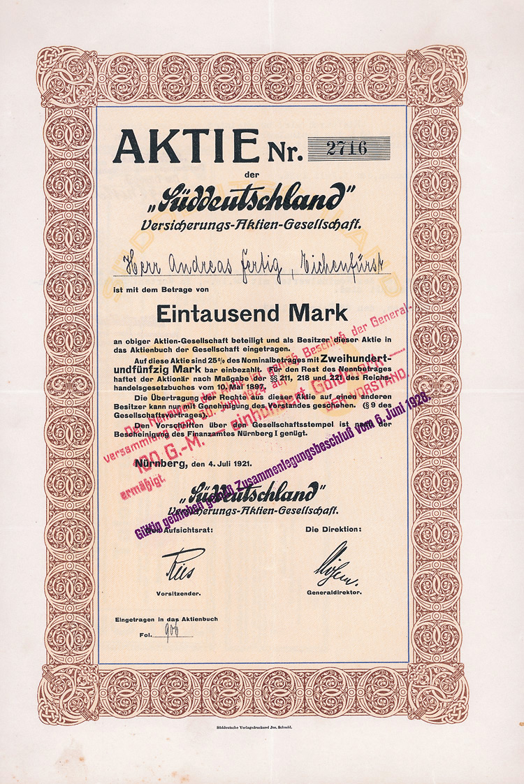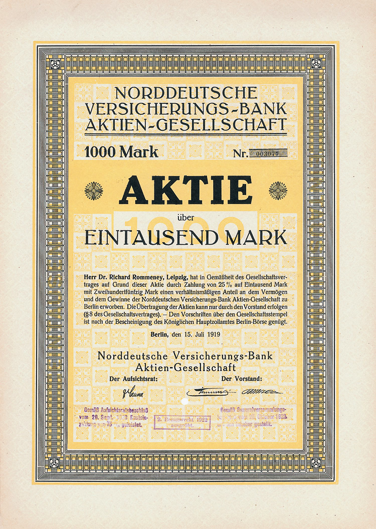 Namensaktie 1.000 Mark, Nr. 5395