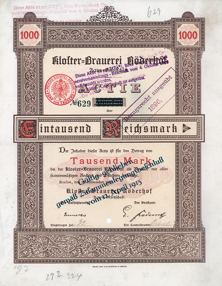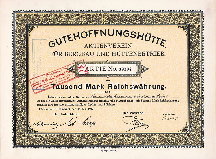 Aktie 1.000 Mark, Nr. 94