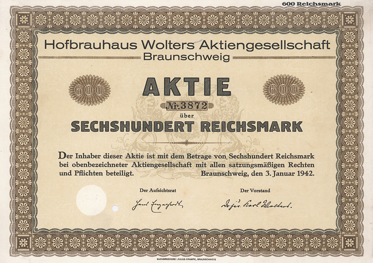 Auflage 2.400. Gründung am 28.12.1888. Neben der Zuckerfabrik besaß die Gesellschaft auch das Rittergut Bredow. Zuletzt unter stärkerem Einfluss der Zuckerraffinerie Tangermünde sowie von Rabbethge & Giesecke, Kleinwanzleben. 1962 verlagert nach Braunschweig und Umwandlung in eine GmbH. Lochentwertet.