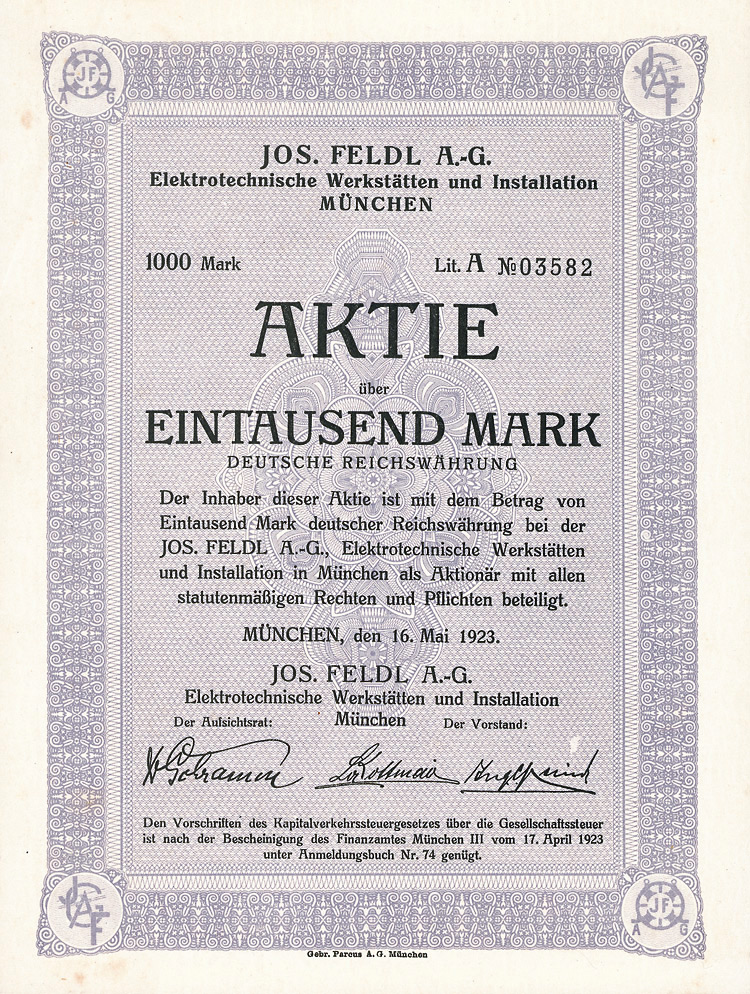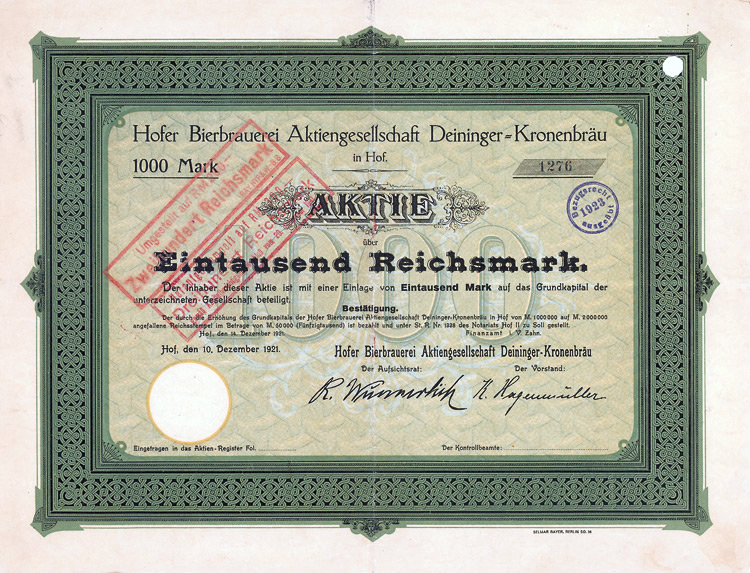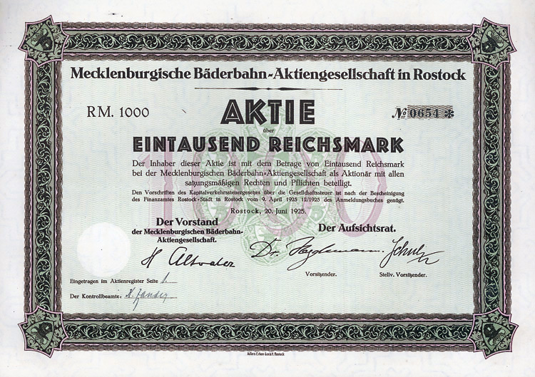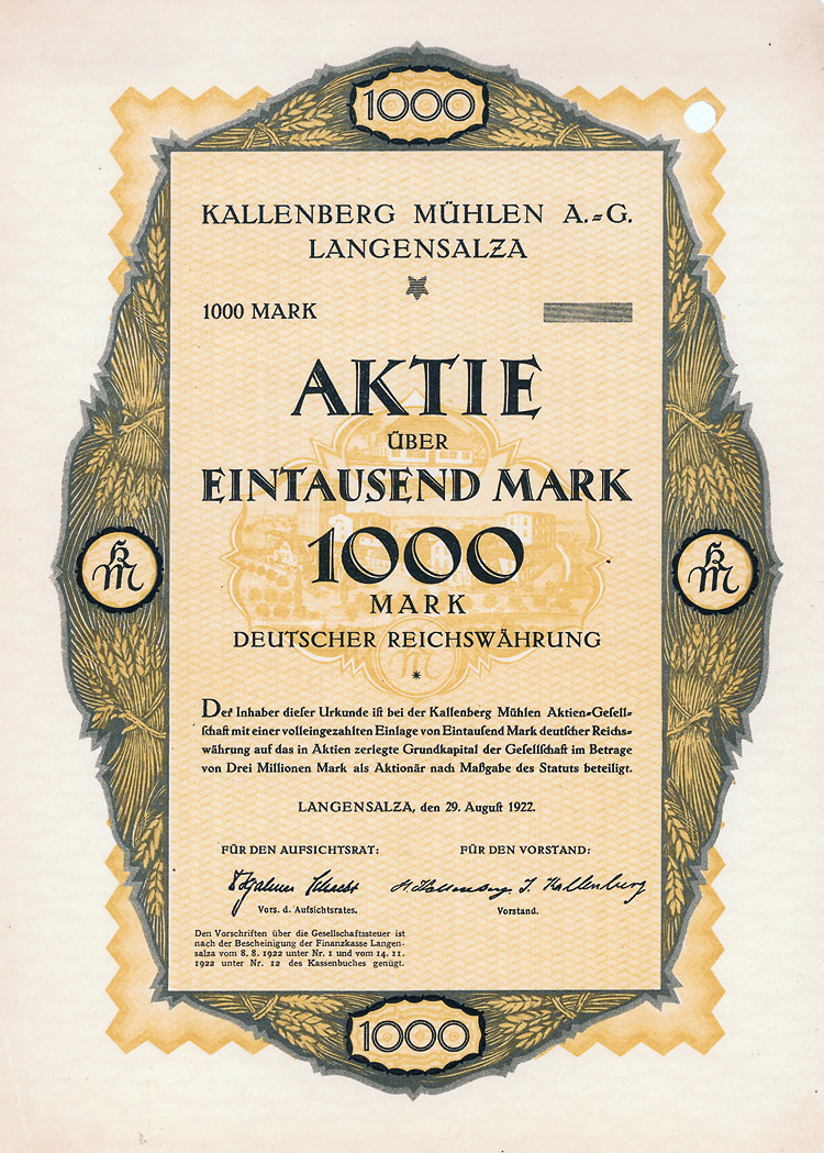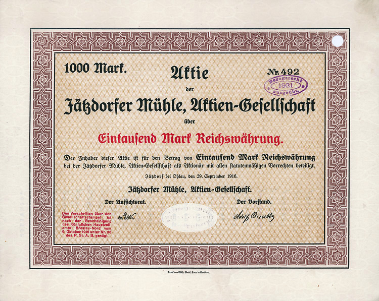 Aktie 1.000 Mark, Nr. 1727