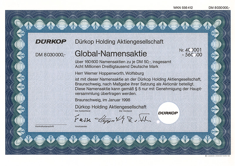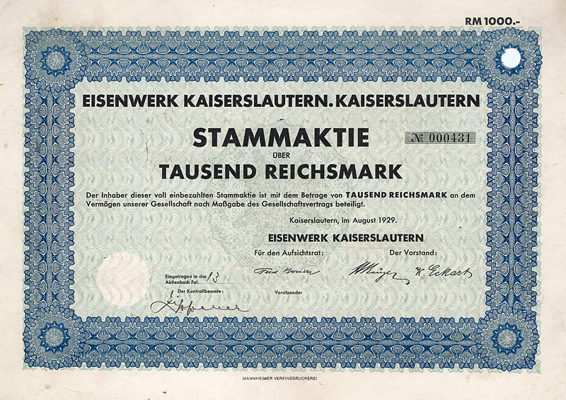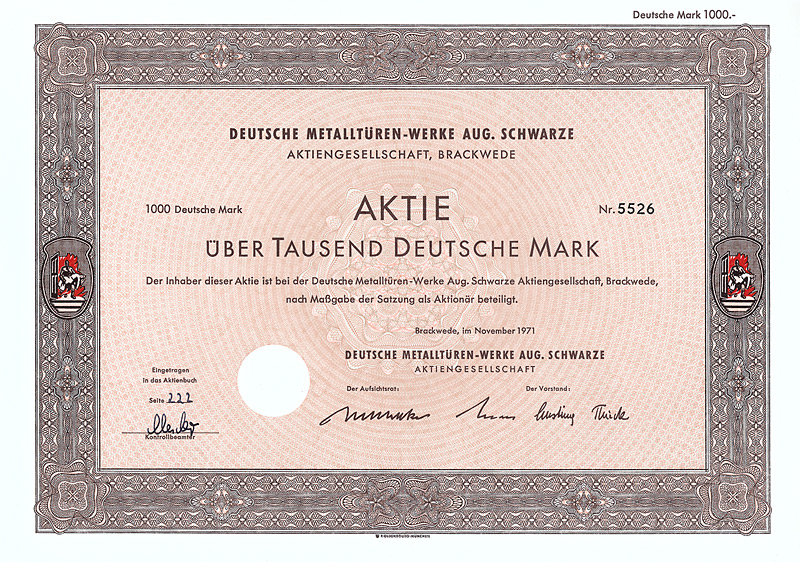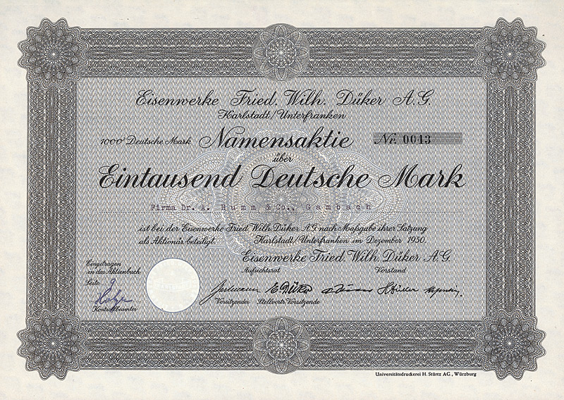 Aktie 1.000 DM, Blankette