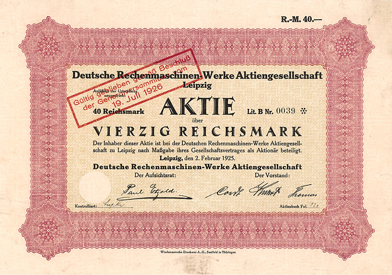 Aktie 100 RM, Nr. 1387