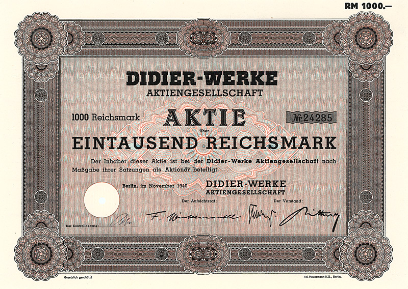 Aktie 1.000 RM, Nr. 1361