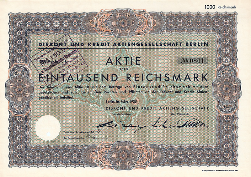Aktie 1.000 RM, Nr. 5024
