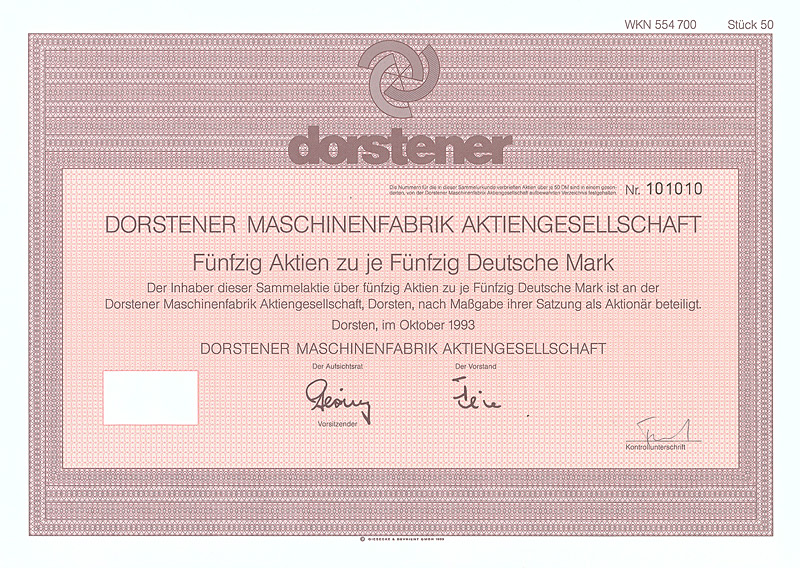 Aktie 50 DM, Blankette