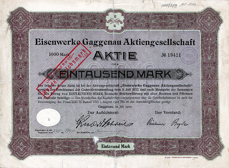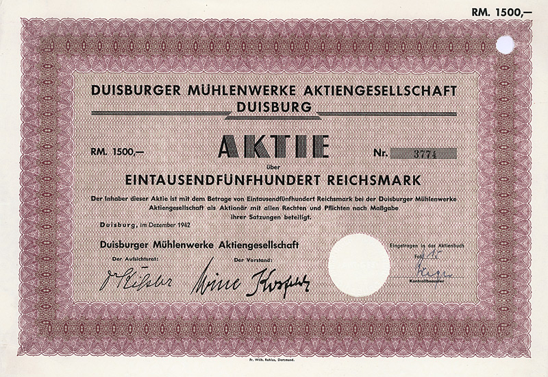 Aktie 1.000 Mark, Nr. 1496