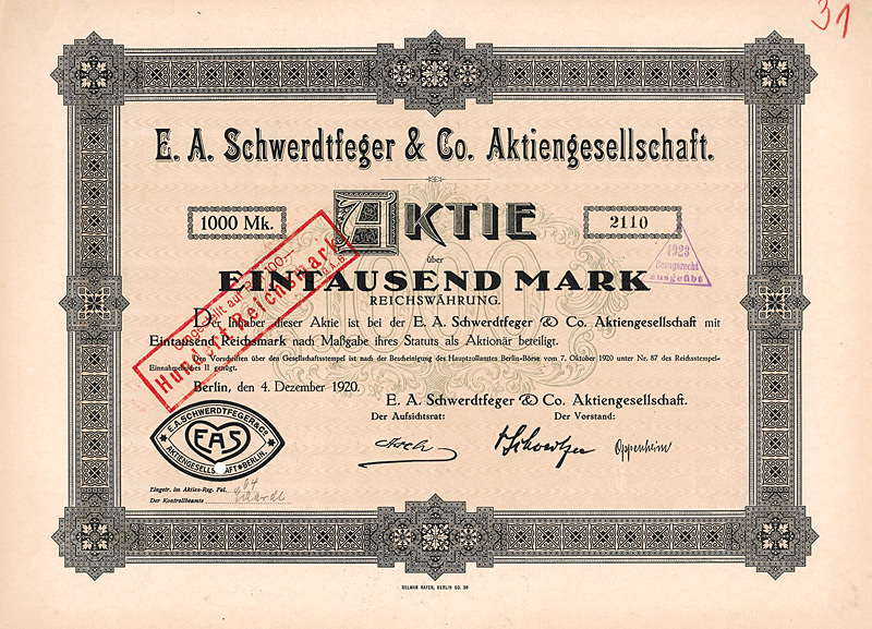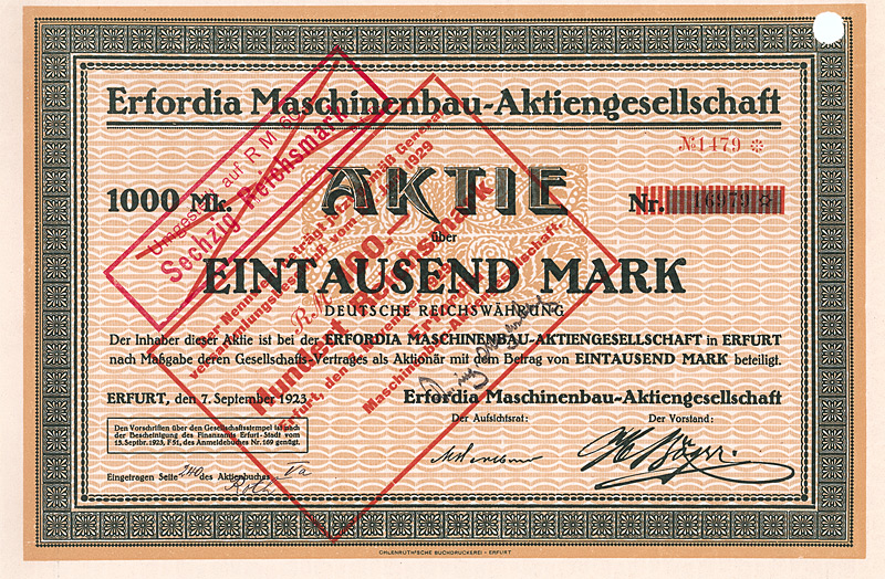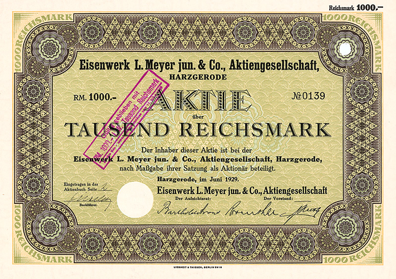 Vorzugs-Aktie 1.000 Mark, Nr. 29809