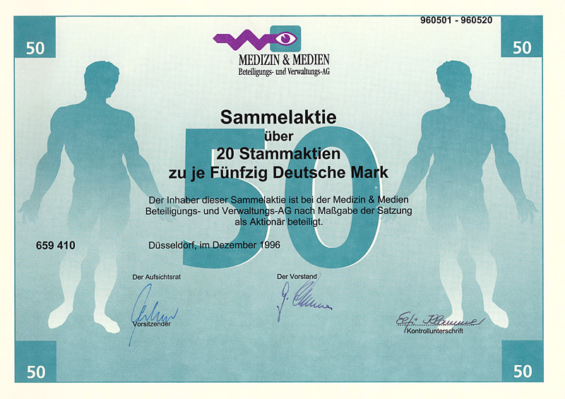 Sammel-VZ-Aktie 20 x 50 DM, Blankette