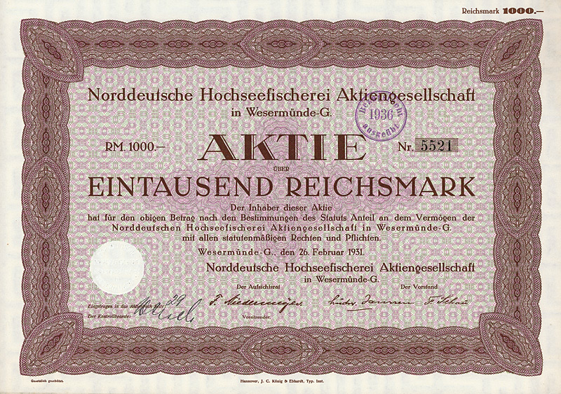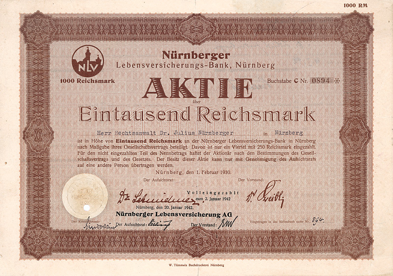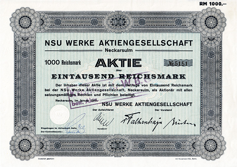 Aktie 1.000 RM, Nr. 661