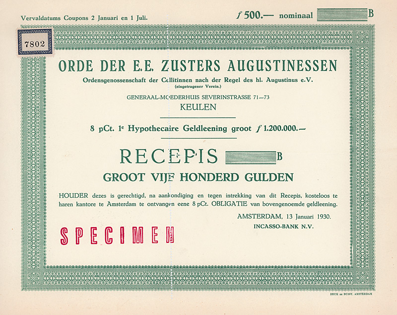 6,5 % Gold Bond 1.000 $, Specimen