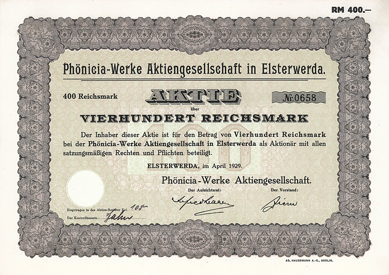 Aktie 400 RM, Nr. 658